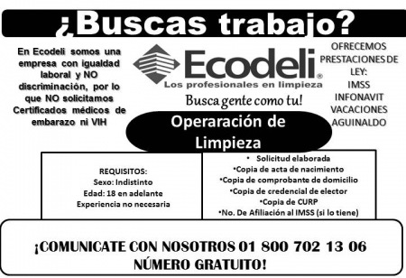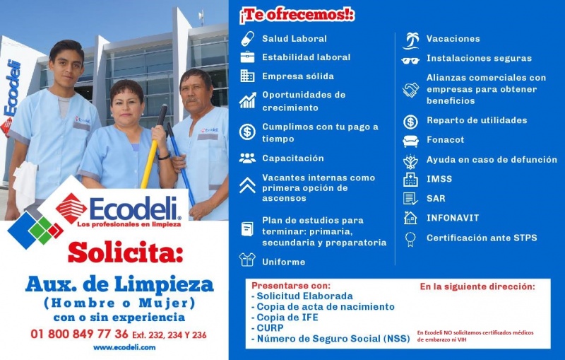 En Ecodeli somos una empresa con igualdad laboral y no discriminación por lo que NO solicitamos certificados médicos de embarazo ni VIH.